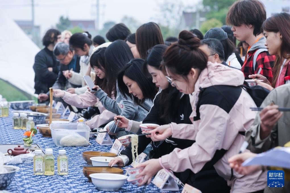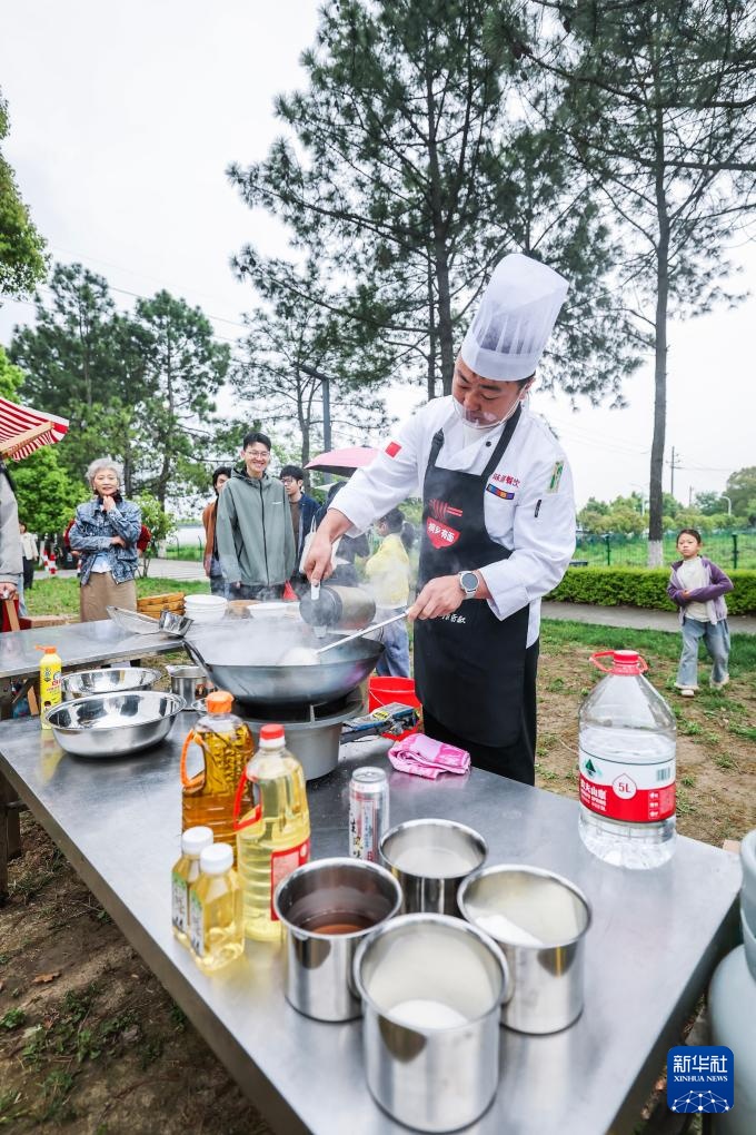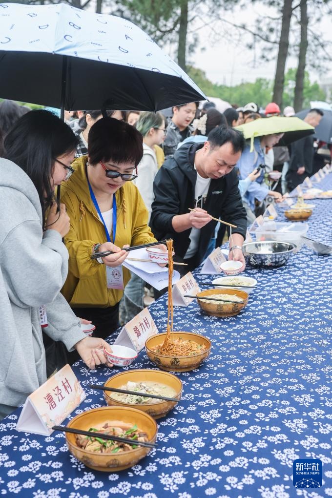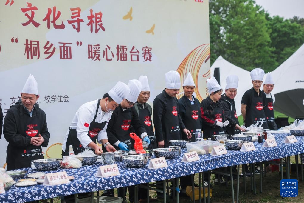 4月11日,浙江省桐乡经济开荒区(高桥街道)三村村举办“桐乡面”暖心擂台赛行动。来自企业食堂和墟落的大厨以及烹调嗜好者展开了桐乡面烹调比拼。